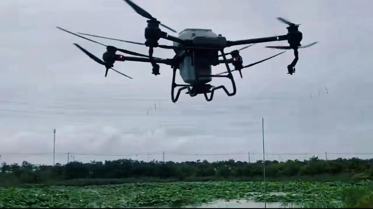 走近白澤湖鄉(xiāng)大楓社區(qū)的田間地頭,可以看到碧綠的荷葉隨風(fēng)搖曳,煥發(fā)著勃勃生機(jī),一陣馬達(dá)的隆隆聲中,一架白色的無(wú)人機(jī)在種滿蓮藕的圩田上呈直線飛行,形成了一道漂亮的風(fēng)景線。