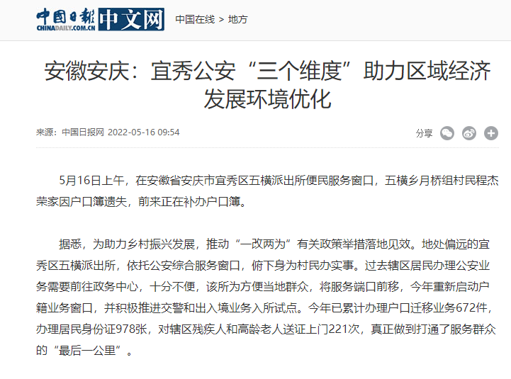 【中國日報】安徽安慶:宜秀公安“三個維度”助力區域經濟發展環境優化