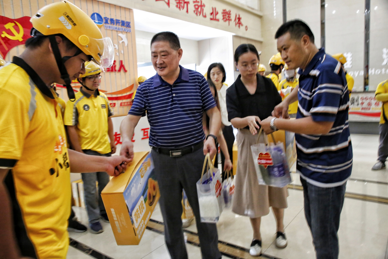 宜秀區(qū)人大副主任、區(qū)總工會主席趙永杰,市總工會權(quán)益部部長張?zhí)毂笠恍衼淼狡呓止A站,向快遞小哥等戶外勞動者們贈送了水果、清涼包、礦泉水。趙永杰感謝大家辛勤的勞動,叮囑大家要合理安排作息時間,勞逸結(jié)合,防止高溫中暑。