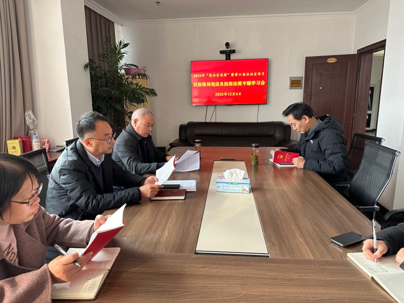三是開展憲法及行政法規理論測試。組織全體黨員干部,參加2023年全省領導干部憲法法律知識測試,參與線上答題和測試。開展一次《中華人民共和國憲法》及《中華人民共和國社會保險法》《醫療保障基金使用監督管理條例》《社會保險經辦條例》等行政法規知識測評,引導全局干部全面深入學習憲法文本。結合學習貫徹黨的二十大精神特別是習近平法治思想,組織全局干部職工參加憲法知識理論測試,檢驗法治學習教育效果,進一步增強了干部職工的法律意識,不斷引導全體人員自覺尊崇法律、模范遵守法律、堅決執行法律。