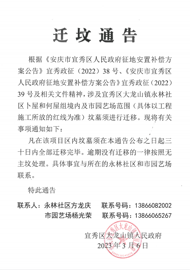 遷墳通告