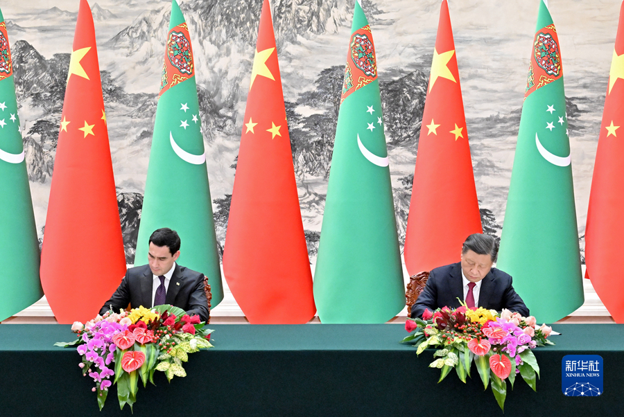 會談后,兩國元首簽署并發(fā)表《中華人民共和國和土庫曼斯坦聯(lián)合聲明》,共同見證簽署“一帶一路”、綠色發(fā)展、數(shù)字經(jīng)濟(jì)、衛(wèi)生、文化、體育、新聞媒體、天然氣等領(lǐng)域合作文件。