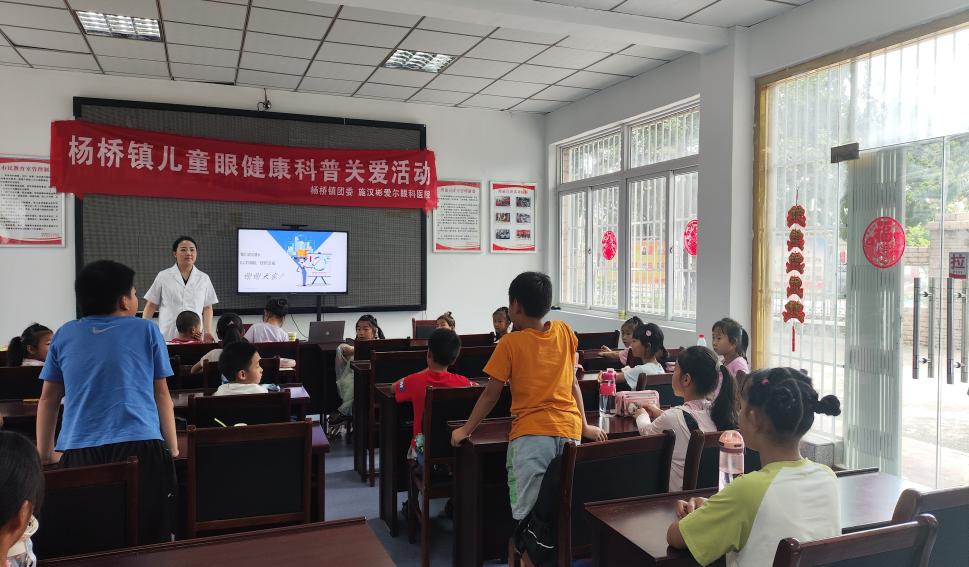 孩子是祖國的未來,一雙明亮的眼睛是他們放眼世界的窗口。保護每一個孩子的視力是學校、家庭、社會義不容辭的責任。為切實加強學生視力保護工作,構筑學生預防近視、保護視力的防線,普及科學用眼的知識,增強學生的護眼意識,7月17日,楊橋鎮團委聯合施漢彬愛爾眼科醫院開展兒童眼健康科普關愛活動。走進楊橋鎮“宜童享未來”暑期課堂為學生開展眼健康科普知識講座。來自施漢彬愛爾眼科醫院的王醫生從眼球的結構、近視眼的產生和危害以及如何保護眼視力給孩子們上了一堂生動的眼健康科普課。課堂上同學們認真聽講,積極舉手回答問題,王醫生也耐心地為同學們答疑解惑,倡導同學們要注意生活、學習的小細節,避免傷害眼睛,用科學的方法保護眼睛,預防近視發生。