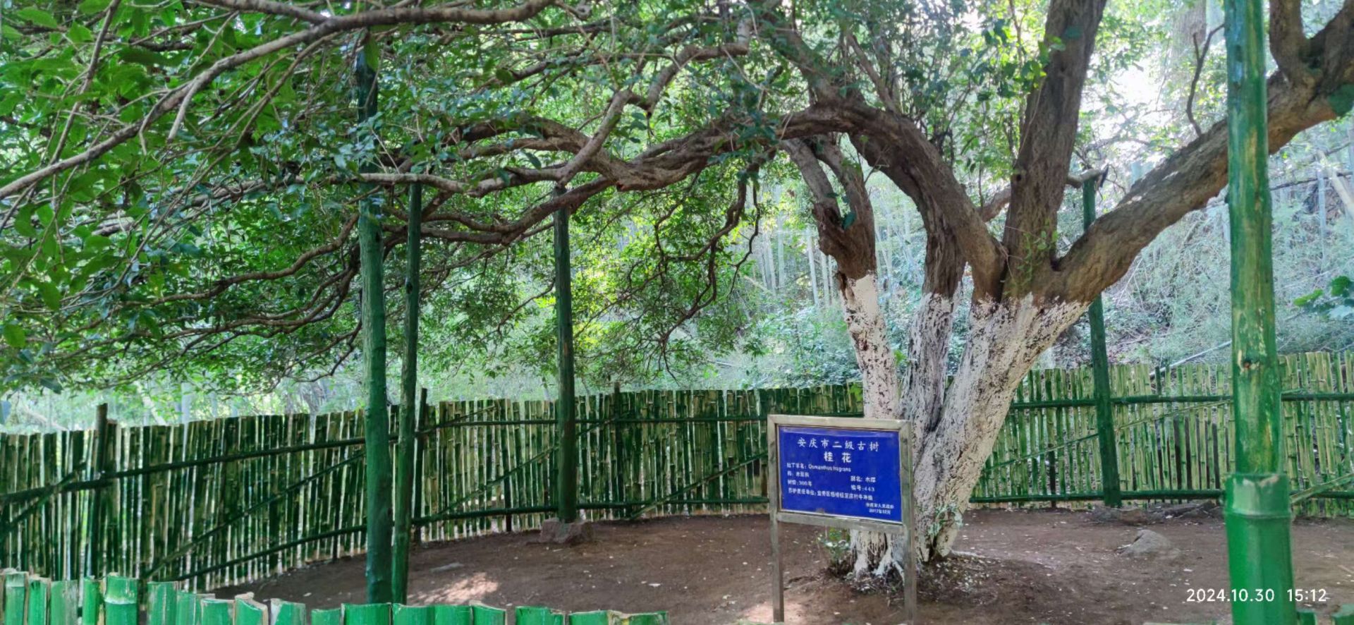 社區(qū)工作人員將古樹周邊環(huán)境清理干凈,并將古樹周圍200平方用竹柵欄圍繞起來,同時設立了管護牌,為了防止大雨或大雪等惡劣天氣影響,用支撐桿托住枝椏,為其提供抗壓能力。