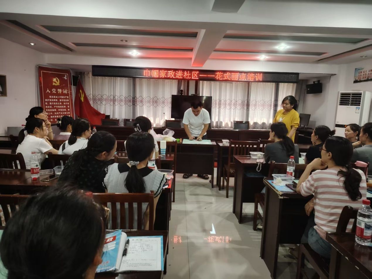 為賦能社區(qū)女性提升就業(yè)技能,豐富居民文化生活,7月14日,由宜秀區(qū)婦聯(lián)主辦、白澤湖鄉(xiāng)婦聯(lián)與鄰鹿養(yǎng)老院聯(lián)合承辦的 “巾幗家政進(jìn)社區(qū)” 花式面點(diǎn)培訓(xùn)活動在月形社區(qū)熱鬧開講。30 余名來自白澤湖鄉(xiāng)轄區(qū)的婦女姐妹齊聚一堂,在面粉與巧手的碰撞中,體驗(yàn)花式面點(diǎn)的制作樂趣。
