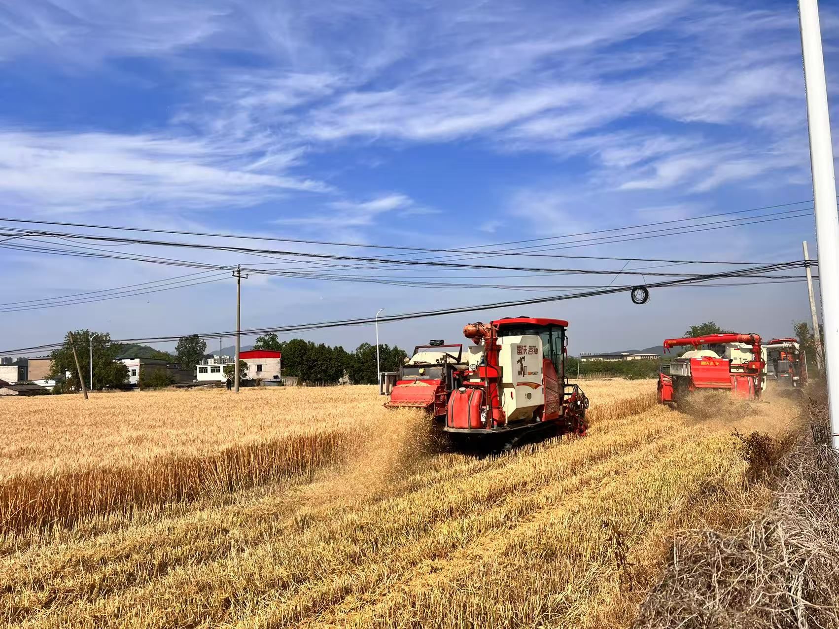 風吹麥浪豐收景,鄉村田野滿地黃。走進宜秀區大龍山鎮百華社區的鄉間田野里,放眼望去,金黃的麥穗在陽光下搖曳生輝,一臺臺大型收割機往返穿梭在金色的麥浪中,齒輪轉動之間,麥粒、秸稈有序分離,種植大戶搶抓晴好天氣有利時機,搶收、搶曬,處處呈現出一片火熱繁忙的好“豐”景。